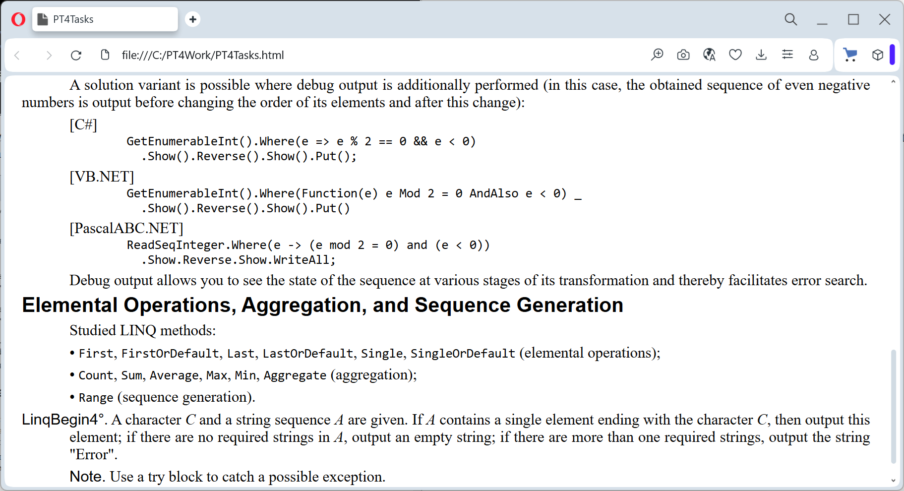 // When solving tasks of the LinqBegin group, the following