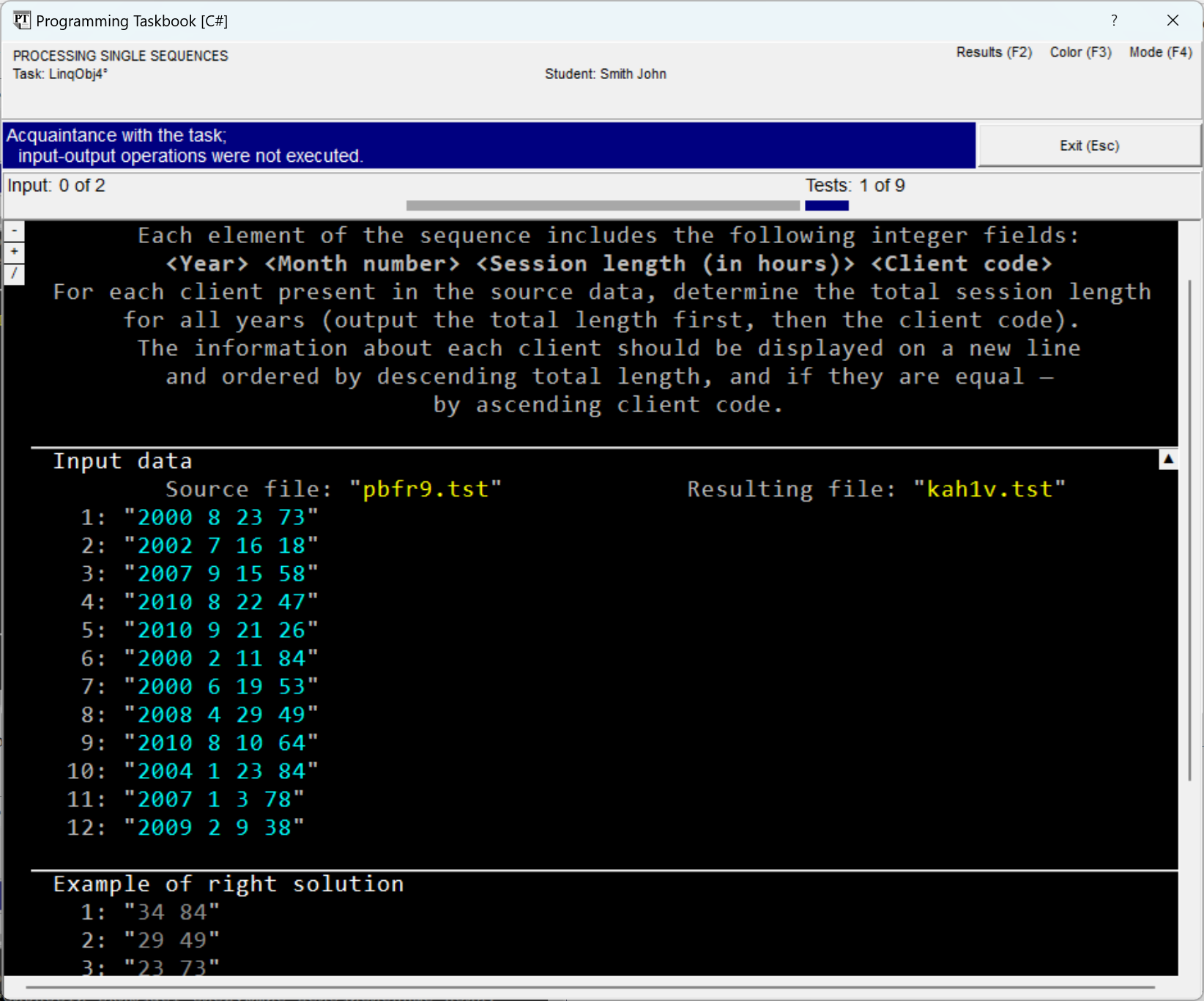 which the taskbook will analyze the contents of this file, comparing it with the correct solution variant.