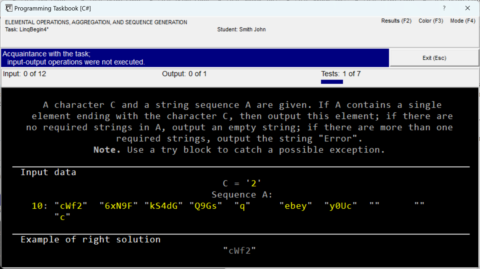 // When solving tasks of the LinqBegin group, the following