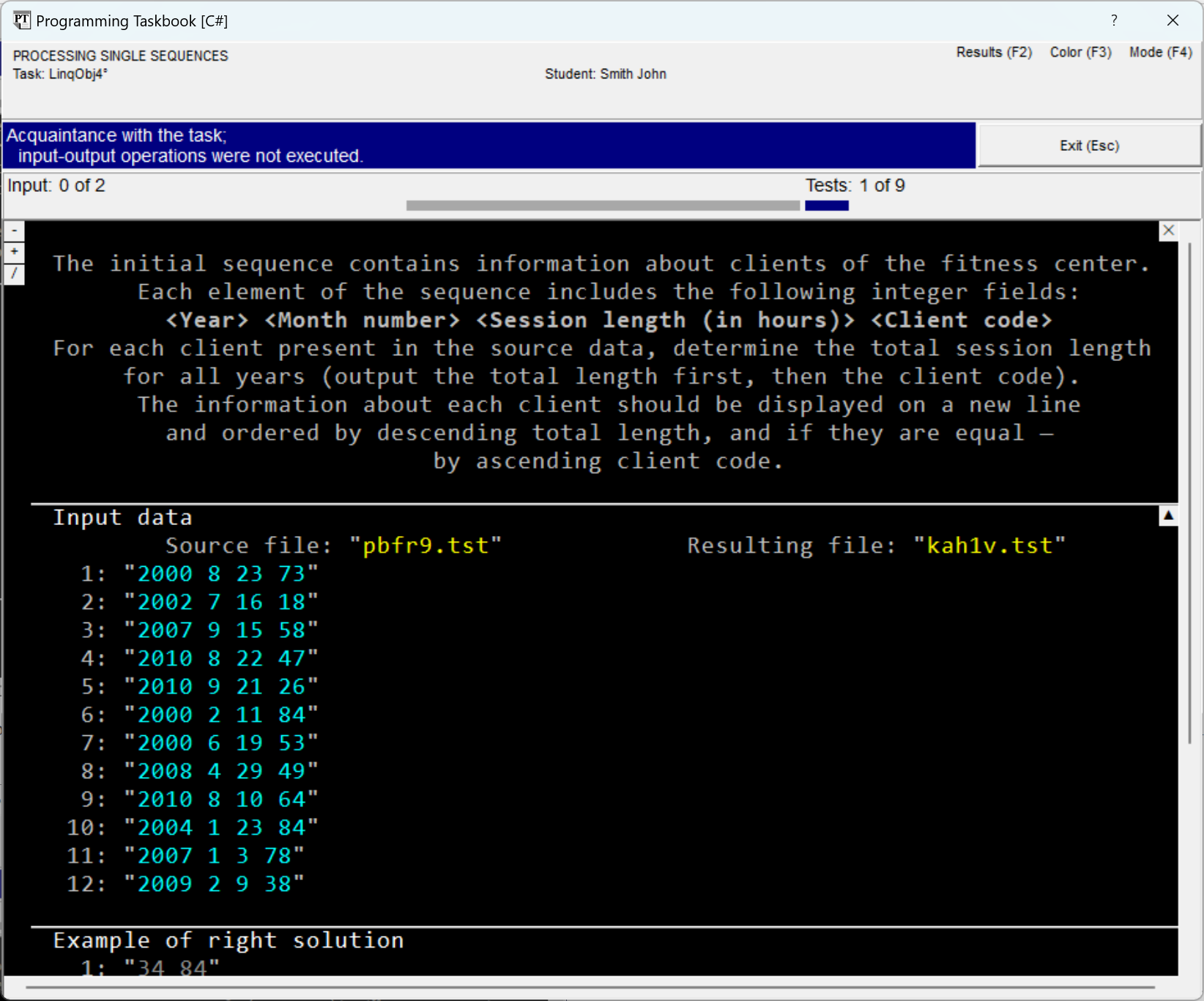 which the taskbook will analyze the contents of this file, comparing it with the correct solution variant.