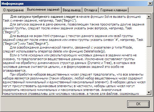 изображения данного окна для языка C++ (в новых версиях задачника текст может отличаться от приведенного).